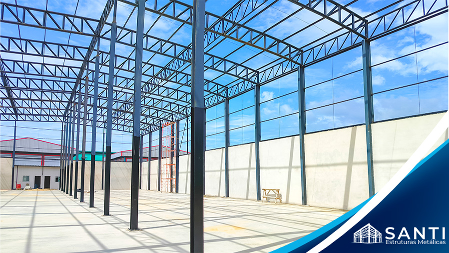 Projetos e execução de galpões, fábricas e ambientes industriais com estruturas resistentes e funcionais.